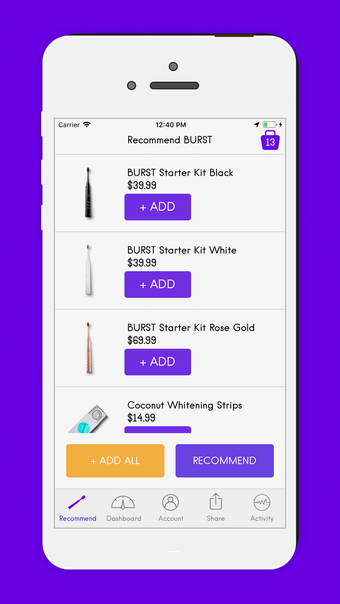 เพื่อเข้าถึงแอปพลิเคชัน ผู้ใช้งานจะต้องทำการสมัครและตรวจสอบเพื่อเป็น "BURST Professionals" ก่อน หลังจากได้รับการอนุมัติและรับข้อมูลการเข้าสู่ระบบ สมาชิกสามารถใช้ประโยชน์จากคุณสมบัติพิเศษของแอปพลิเคชันได้ แอปพลิเคชันนี้ให้การเข้าถึงข้อมูลและทรัพยากรที่เกี่ยวข้องกับวงการทันตกรรมอย่างหลากหลาย เช่น ข้อมูลผลิตภัณฑ์ เอกสารการศึกษา และโอกาสในการพัฒนาทางวิชาชีพ
